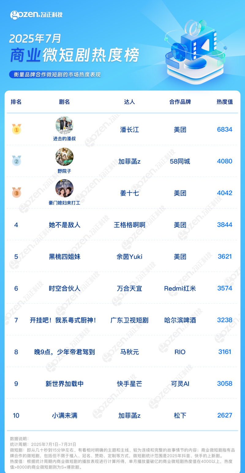 据媒体报道,《进击的潘叔》直接拿下7月商业微短剧热度榜冠军。
