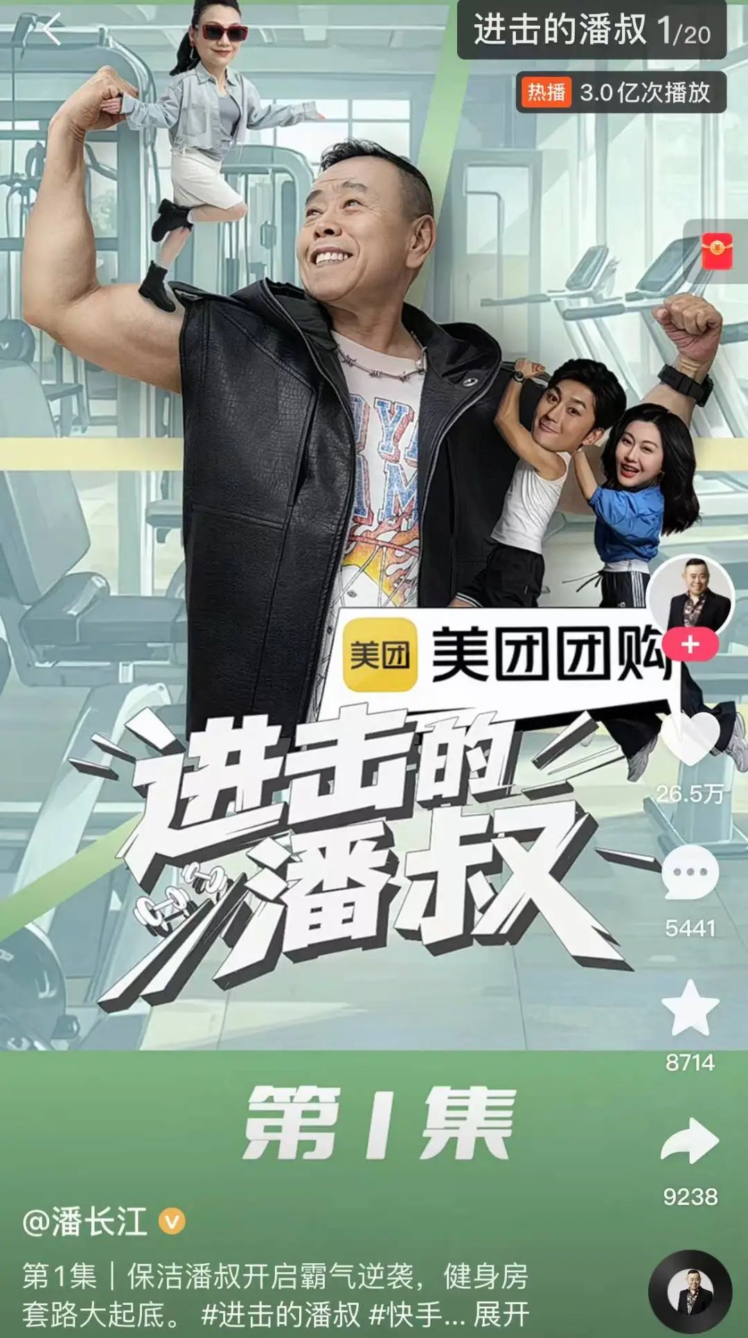 公开信息显示,《进击的潘叔》这部剧是由快手出品、美团团购独家冠名、耀客传媒承制的。