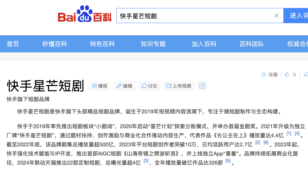 快手于2019年就推出了短剧板块“小剧场”,并于2021年升级为独立厂牌“快手星芒短剧”。
