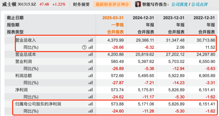 然而,令人大跌眼镜的是,在竞争白热化的AI赛道,威士顿却在2025年第一季度大幅缩减研发投入,同比锐减40.16%,近乎“腰斩”。