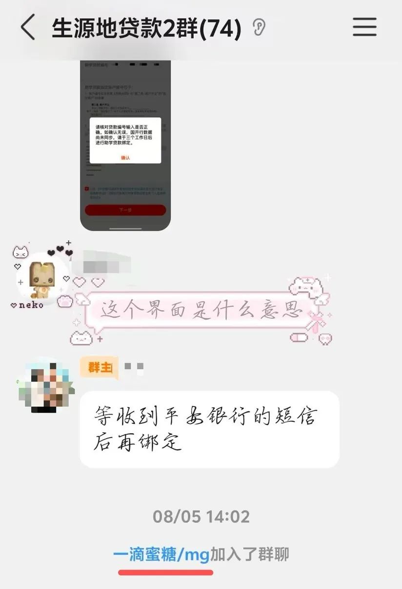 8月5日14时2分,一个昵称为“一滴蜜糖/mg”的网友加入了“生源地贷款2群”。一场针对困难学生的诈骗就悄然开始了。