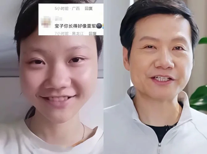 近日,有网民在社交平台发布视频撞脸雷军,引发广泛关注与热议。大皖新闻记者注意到,视频中,一个素人女孩绑着马尾辫,五官和脸型都与雷军十分相像。甚至有网友直呼,“这是雷军的远方表妹。”