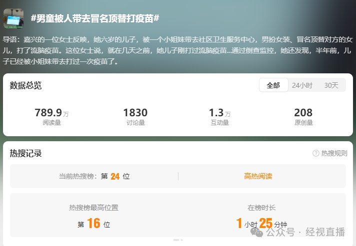 近日,据1818黄金眼报道,浙江嘉兴一6岁男童被邻居(母亲称为“小姐妹”)两次带去社区卫生服务中心,通过男扮女装(戴粉色帽子、口罩、包裹严实)冒充对方女儿接种疫苗。6岁男童被人带去冒名顶替打疫苗