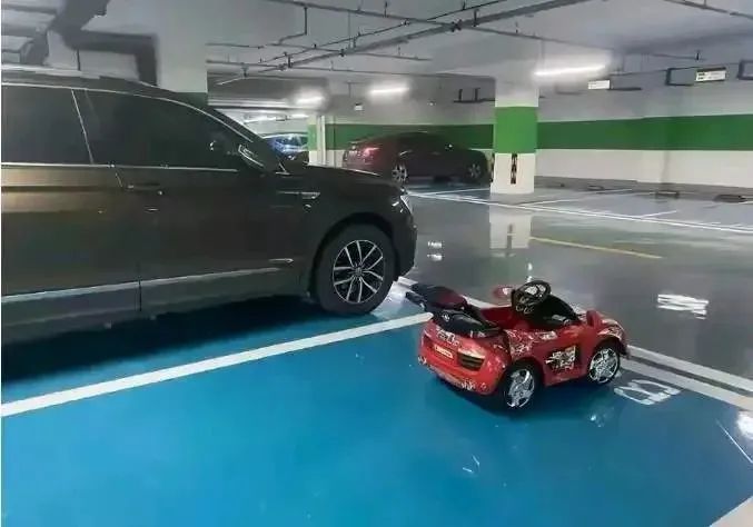 他为了维护自己的权益,防止其他车辆误停,居然用儿子的玩具车来占用车位。