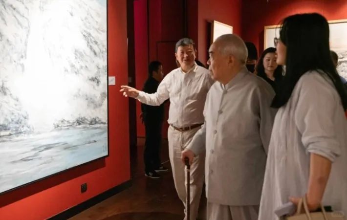 前晚,疑似范曾继子范一夫则在社交媒体发布了三张范曾看展的照片,配文“老爷子来看画展”,被外界视为回应。图中范曾所看的展览,正是在北京市东城区陶然天美术馆进行的“道法自然——范一夫山水画展”,陪伴范曾的徐萌身形微胖,有网友称可能怀孕。