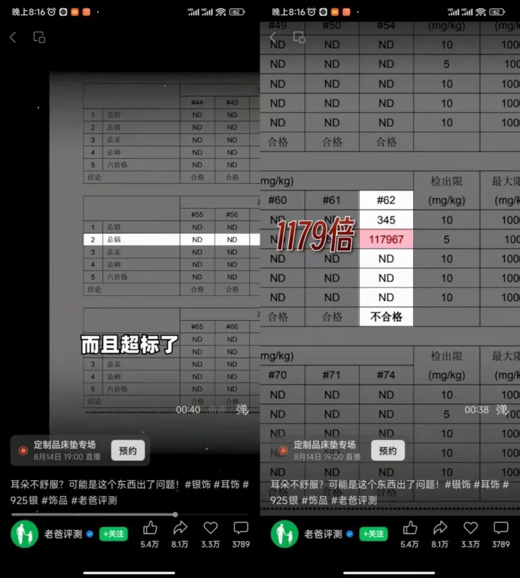 此前,某知名团队曾发布了专门针对银饰品的检测视频。