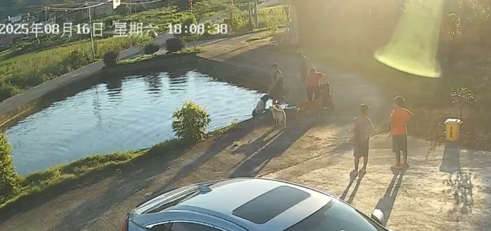 这位视频发布者表示,鱼塘大约有3米深,“上次也是连人带车掉进去了,还不加设围栏,这次差点又出事故。村委说不能砌围墙,影响美观。”