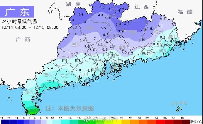 最近几日 今冬首场寒潮 横扫我国大江南北 冷空气“到货”之后 广东气温直接“跳水” 昨日(14日)早晨 清远连山金子山顶录得广东全省的最低温 零下1.5℃ 金子山出现了少见的雨凇天气 今晨 广东省内多地气温创下半年以来新低 广州迎来了个位数的气温 市区今晨录得最低气温仅8.0℃ 在低温和北风的配合下 走在街头不禁瑟瑟发抖 不少网友表示要求“退货” 展望未来几日 受冷空气持续影响 广东天气寒凉 部分市县有零星小雨 海面有6-8级东北风 具体天气预报 16日,韶关、清远、肇庆、云浮和粤西多云到阴天,有零星小雨,其余市县多云间阴天,局部有零星小雨。 17-18日,韶关、清远、肇庆北部多云到阴天,有零星小雨,其余市县多云间阴天。