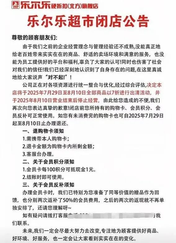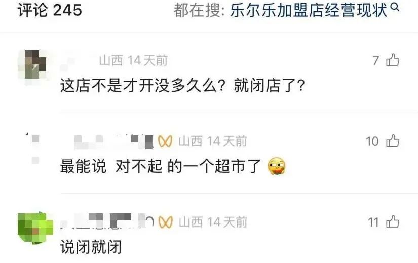 类似的故事,随后在北方也发生过。2025年7月底,乐尔乐在晋中开出的北方旗舰店突然闭店,让消费者失望至极,连忙担心是不是“卷款跑路”。