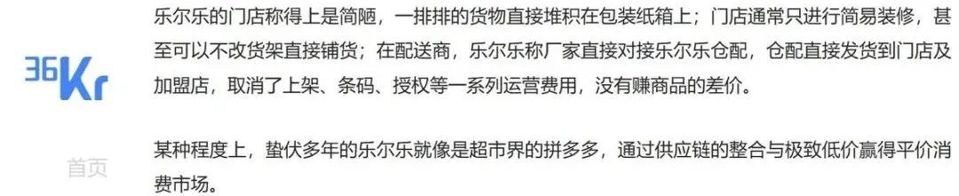 图源:36氪虽然被部分网友吐槽“第一次见没有空调的超市”,但依靠这些举动,乐尔乐最大程度降低了运营成本,让乐尔乐在2025年初门店数量突破7900家,销售额超400亿元,成为下沉市场零售的巨无霸。