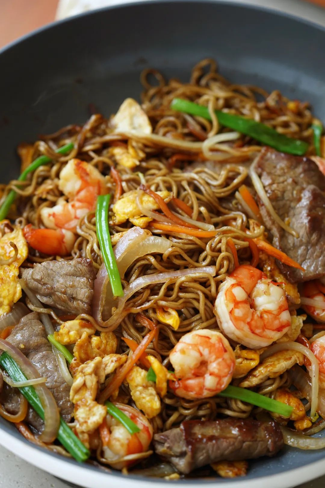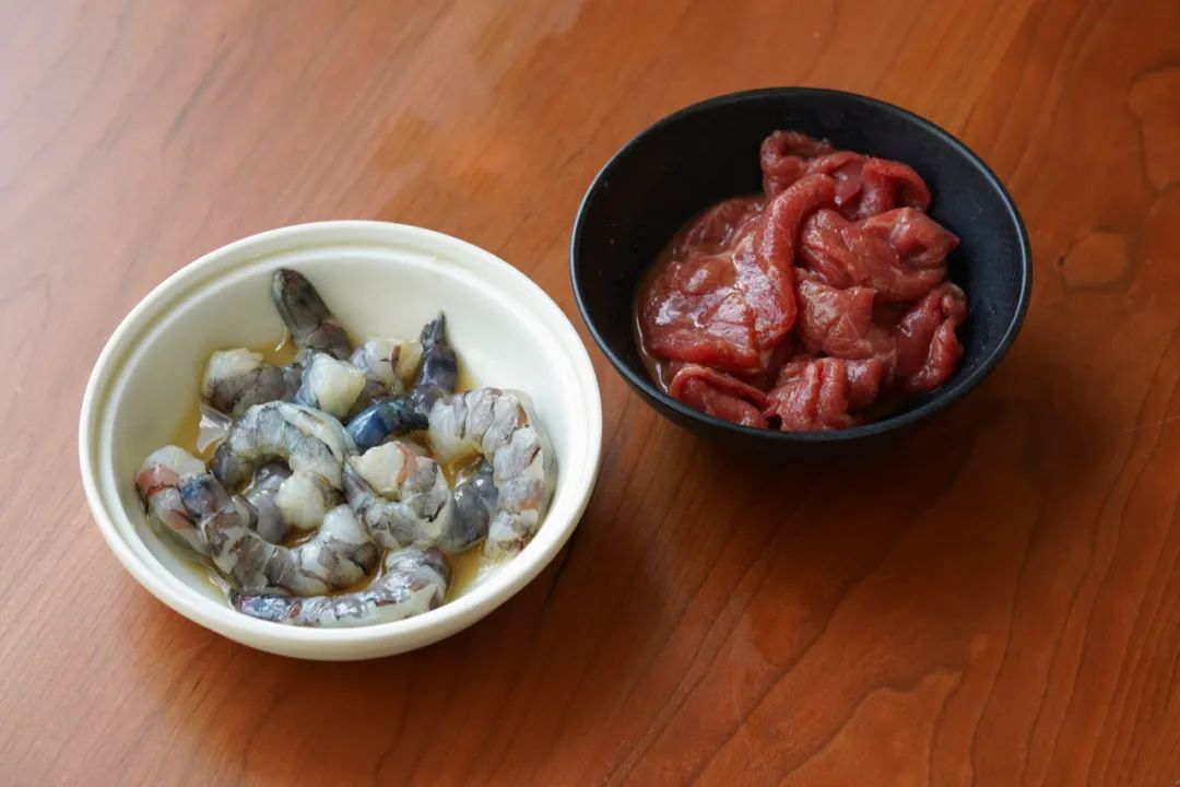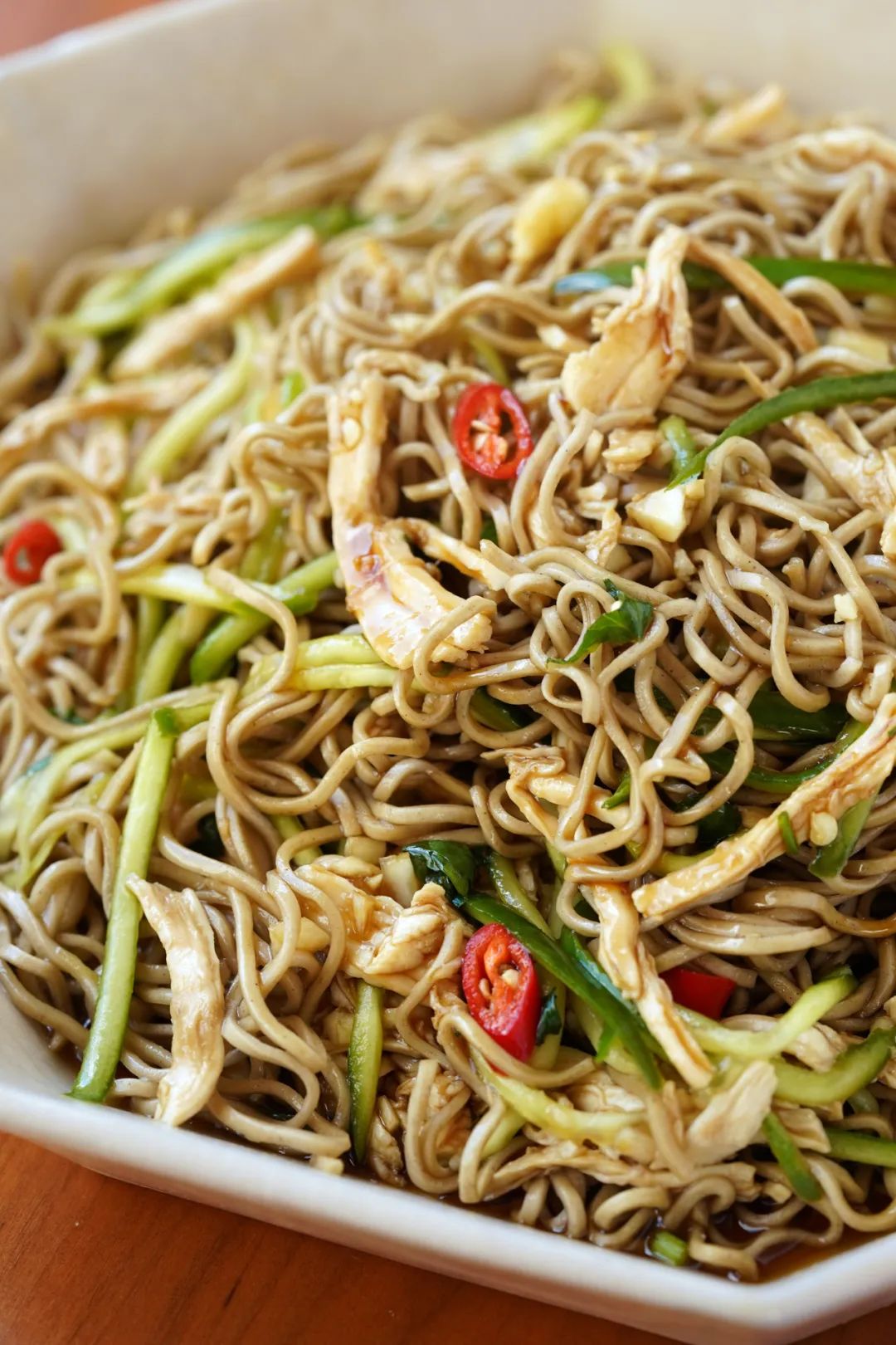 2、虾仁和牛肉二取一就行,但我选择全要(这里是60g虾仁和90g牛肉片)。两者的腌料也一模一样:1勺生抽,1/2勺蚝油,1/5勺白胡椒粉,1/3勺淀粉抓匀,腌制15分钟。3、1份荞麦面(60g左右)入沸水锅中,大火焯烫1分半后捞出,沥干水分。这款荞麦面劲道又好吃,我好爱,最近一直在吃,有需要的点文末链接。4、锅中加入1勺食用油,开中火,油热后先炒虾仁/牛肉片,炒至变色盛出。6、加入豆芽、洋葱丝、胡萝卜丝翻炒15秒左右。再加入荞麦面、虾仁/牛肉片,加入1勺蚝油,1勺生抽,1/2勺白砂糖,炒匀。1、半块鸡胸肉冷水入锅(讲究一点的加入2勺姜片,1勺葱段,1勺料酒)。大火煮沸后,转中火煮15分钟。 2、调料汁:1勺蒜末,1勺香菜末,1/2勺小米辣圈。再加入2勺生抽,1勺香醋,1/2勺蚝油,2/3勺香油,1/5勺白砂糖,再挤入半个柠檬的柠檬汁(不喜欢可以不加),搅拌均匀。3、跟上个菜谱一样,1块荞麦面(60g左右),沸水入锅,煮3分钟后捞出(过一下冰水,面条会更有嚼劲)。面捞出盛盘,加上鸡胸肉撕成的丝,和半根黄瓜丝。