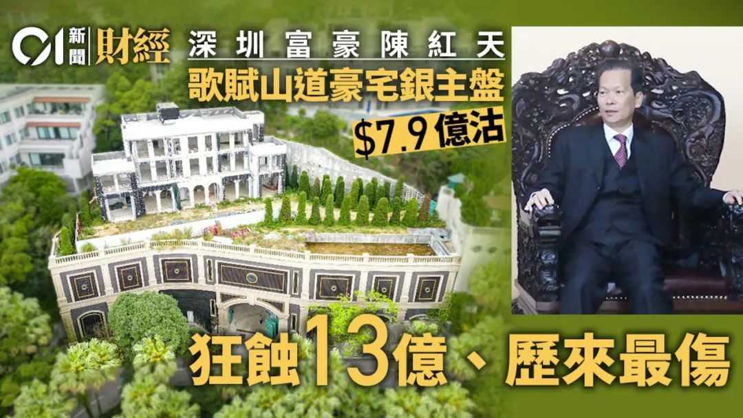 近日,香港豪宅市场再掀波澜——深圳祥祺集团董事长、内地富商陈红天名下的山顶歌赋山道15号超级豪宅,以7.9亿元价格成功易手,创下了令人震惊的亏损纪录:较2016年高价买入时的21亿元,账面亏损高达13.1亿元,跌幅超过六成。这场豪宅“血亏”事件,不仅暴露出豪宅市场的剧烈波动,也让外界对内地富豪在港资产的风险敲响警钟。