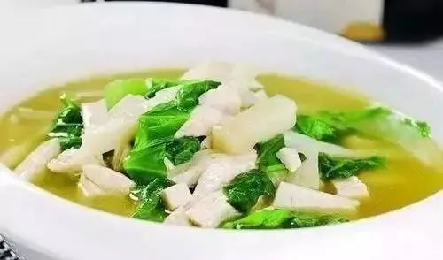 4.金汤白菜 原料:白菜,咸蛋黄,鸡汁。 做法: 1.先把白菜去叶,选取三层内的菜心。 2.下入开水锅中烫约1分钟,放进小翅盅里,再把咸蛋黄和鸡汁调汁浇上即可。