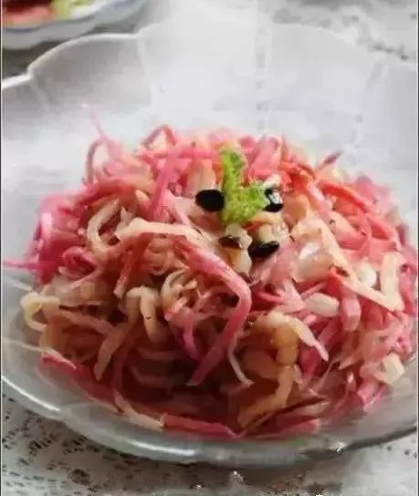 3.白菜心里美 原料:白菜心,心里美萝卜,糖,醋,白芝麻。 做法: 1.白菜心切丝,萝卜擦丝。 2.加糖、醋、白芝麻,一起搅拌即可。