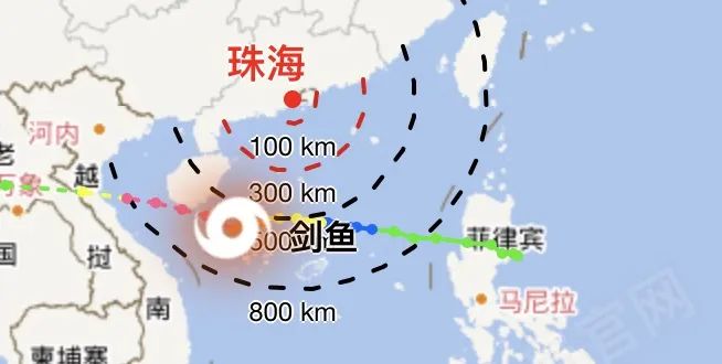 预计,“剑鱼”将以每小时20公里左右的速度向西偏北方向移动,强度继续加强,最强可达强台风级(14-15级,42-48米/秒),并将于24日下午至傍晚在海南陵水到乐东一带沿海登陆(13-14级,40-45米/秒,台风级或强台风级),也有可能经过海南岛南部近岸海面,然后逐渐趋向越南中北部沿海。