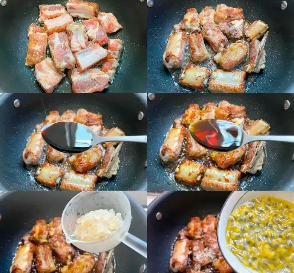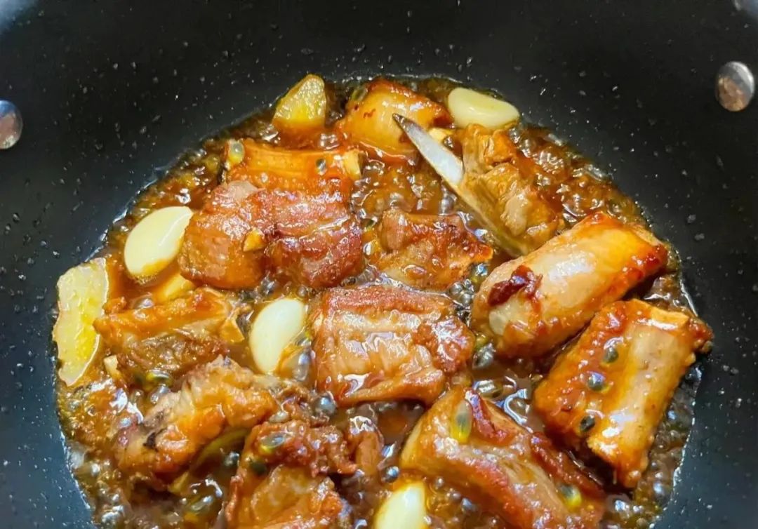 百香果有“果中之王”的美誉 富含多种氨基酸、微量元素 味甘酸,有生津利咽、安神助眠、润肠助消化之效 今天分享一道百香果排骨 这个搭配出奇的美味且补中益气、健脾和胃 排骨软烂脱骨、酸甜可口 果香浓郁、清香美味 食材:排骨、百香果、姜、蒜、熟芝麻 调料:花生油、盐、白胡椒粉、生抽、陈醋、冰糖 排骨洗净沥干水分 加1小勺盐、适量白胡椒粉、花生油抓拌均匀腌制30分钟 3个百香果挖出果肉备用 热锅热油放入排骨中火煎至两面金黄 加2勺生抽、2勺陈醋、适量冰糖 倒入一半百香果 放入姜片、蒜瓣翻炒出香味 加适量清水(没过排骨)大火煮开 盖上盖子中火焖煮30分钟 再倒入剩下的百香果翻炒均匀 大火收汁就可以出锅啦 最后撒上芝麻就可以上桌啦 香气四溢、果香浓郁 排骨软烂脱骨、酸甜可口 每一口都有浓郁的果香味 开胃又下饭、补中益气、健脾和胃 来源|千厨百味、如有侵权请联系删除
