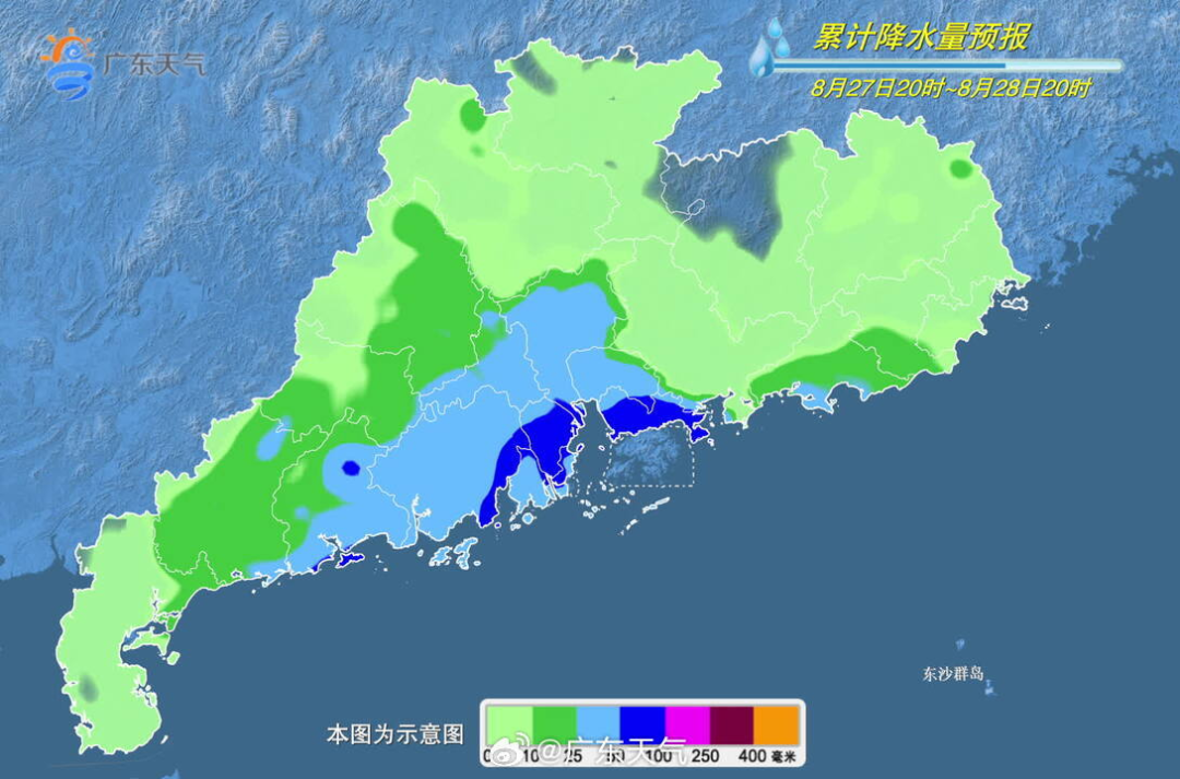 预计,28-30日,受南海热带扰动影响,广东省中南部多雷雨,雷雨时局部伴有7~9级短时大风;未来三天中北部的部分市县有35℃左右的高温天气。