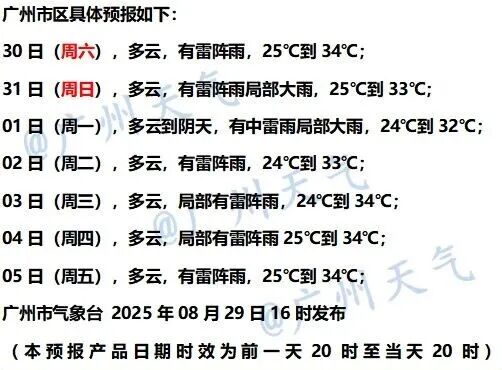 广州天气方面,预计,未来几天台风逐渐远离,副热带高压逐渐加强,广州高温伴雷雨,局部雨势较大。