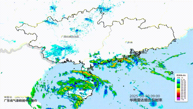8月30日,粤西和珠三角中南部市县有中雷雨局部大雨,其余市县有(雷)阵雨,雷雨时局地伴有8~10级短时大风。