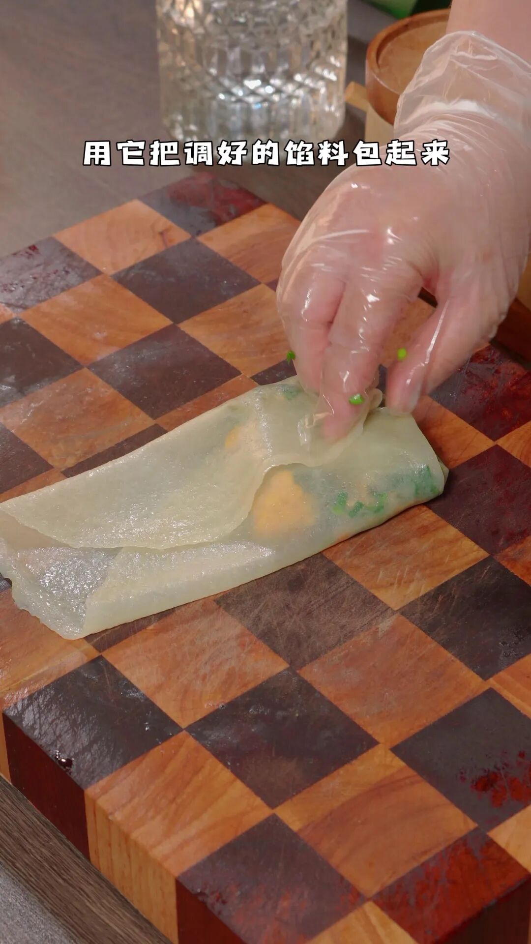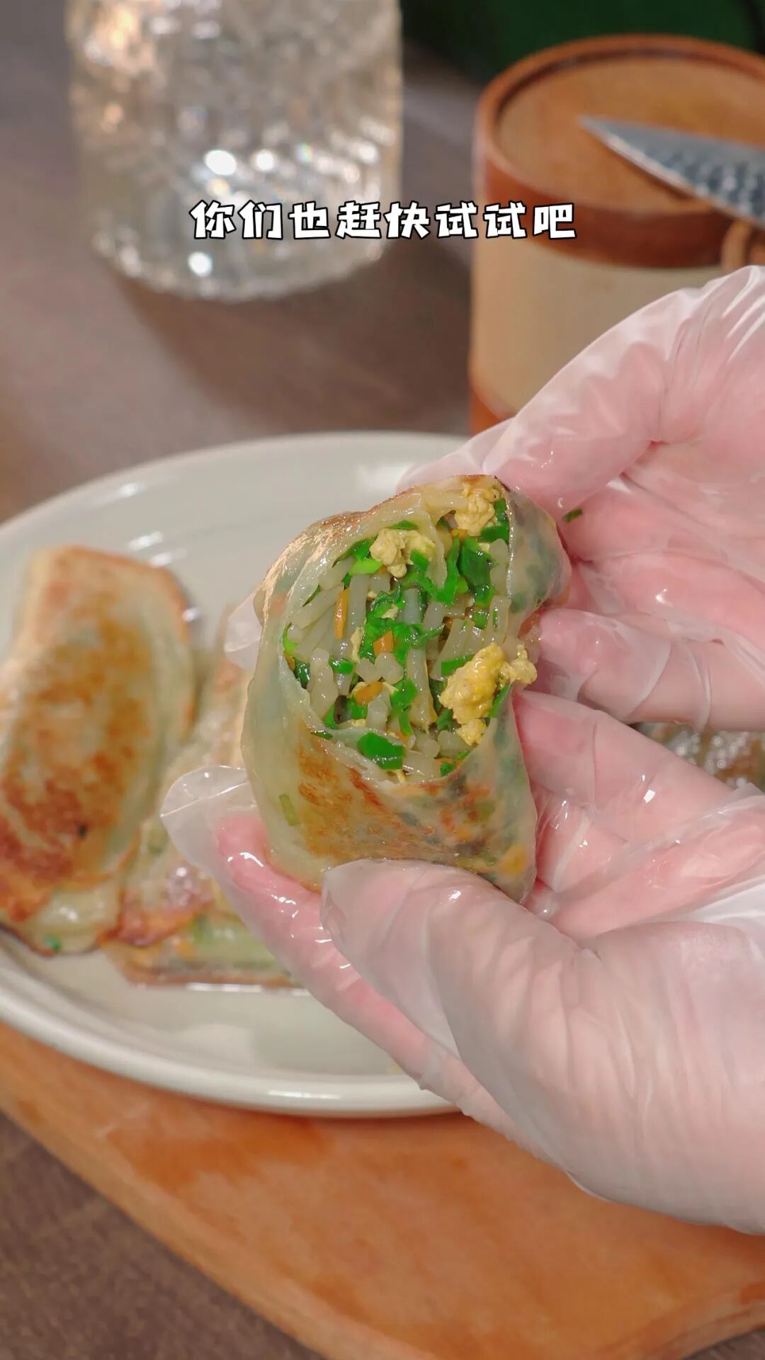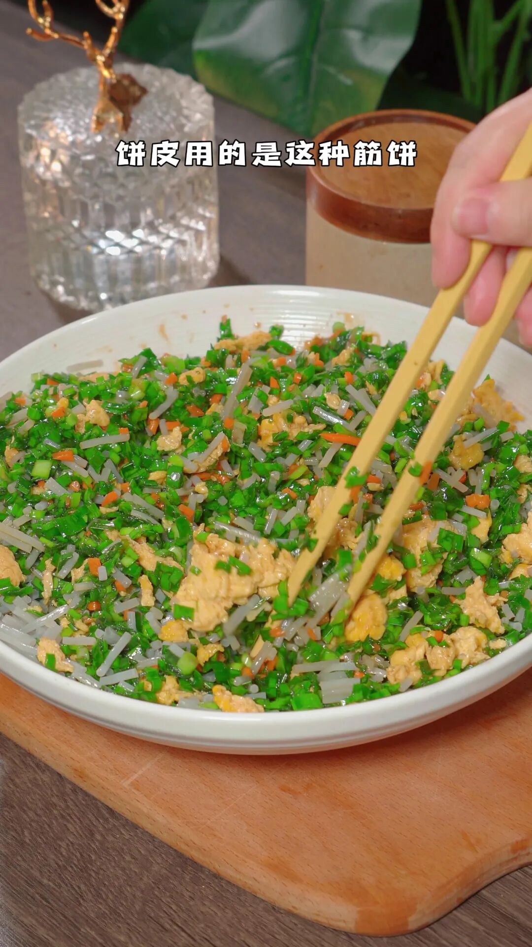 1勺盐,1勺鸡精,半勺十三香,1勺蚝油 韭菜切碎一点更好吃。 加油拌一拌,去去辛辣味。 再放些鸡蛋碎,胡萝卜碎,粉丝碎,口感更丰富,调味加1勺盐,1勺鸡精,半勺十三香,1勺蚝油。 饼皮用的是这种筋饼,只需要上锅蒸一蒸就能直接吃,柔韧又劲道。 用它把调好的馅料包起来。 锅里放一点点油,把韭菜盒子一个个放下去,小火煎到金黄再翻面,喏,焦焦脆脆,看着就馋。 外酥里香,馅料多到兜不住。每次做上桌瞬间被抢光,你们也赶快试试吧! 来源|上班族的便当、如有侵权请联系删除