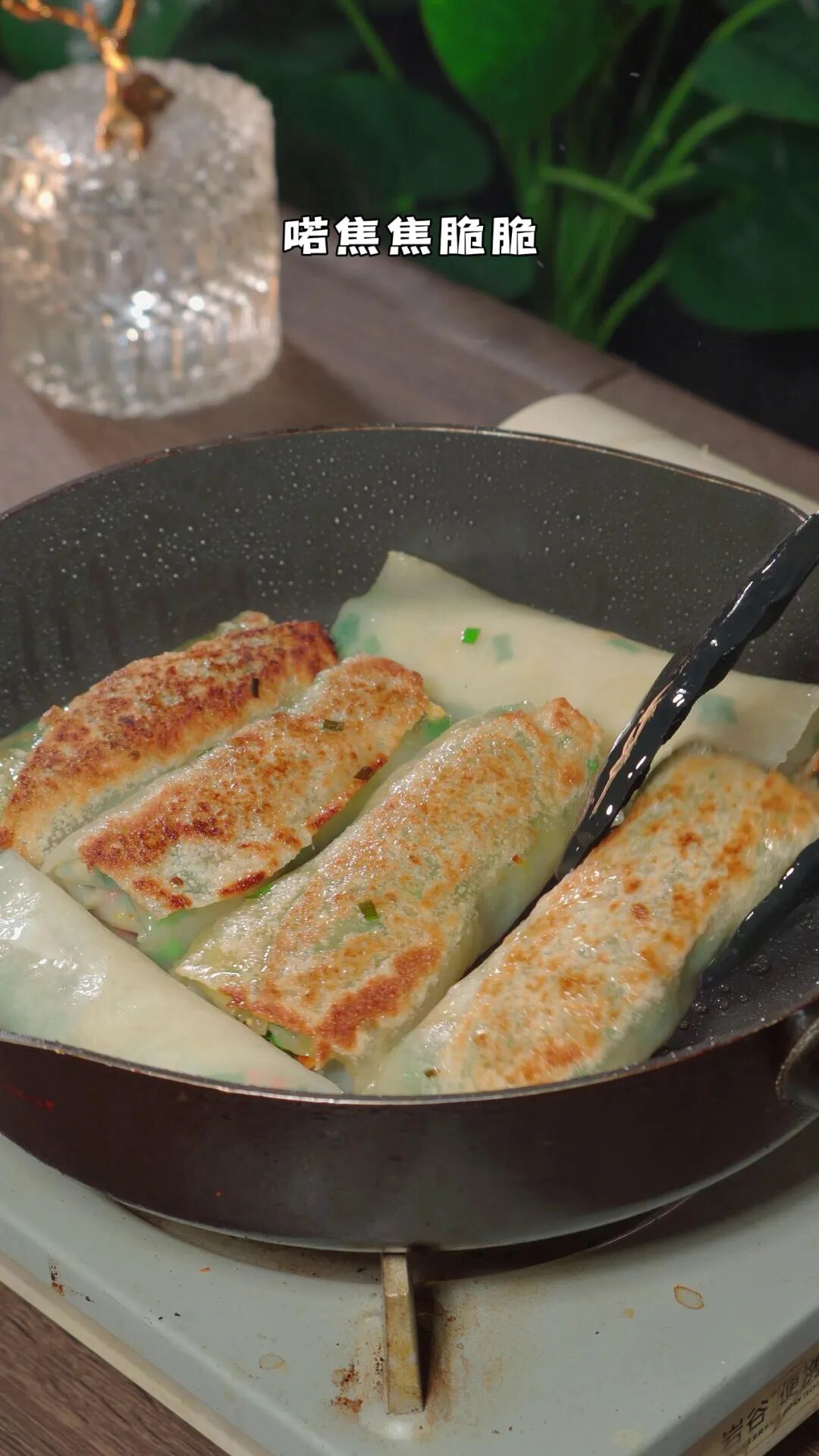 表皮煎的金黄焦脆,入口酥香,还带着一丝饼皮的韧,喷香。 关键是啊,它里面的料也很丰富,鲜香混着饼香,贼过瘾。 有菜有主食,夏天夜晚不想吃饭,来上这么几个饼妥妥的。 不需要揉面就能搞定的韭菜盒子,酥香料多,谁吃谁馋爱! 韭菜1把,鸡蛋3个,红薯粉丝1把,胡萝卜1根