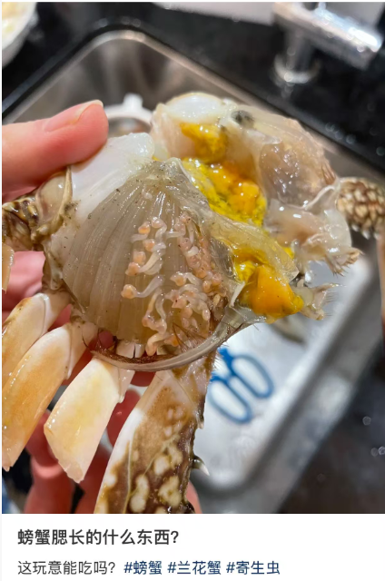 这些“虫卵”都吸附在梭子蟹的腮瓣里面,