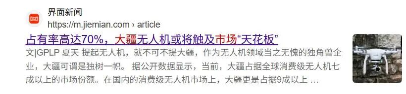 据界面新闻报道,在2019年的时候大疆的市场占有率就已经达到了70%,并且长期垄断了欧美市场。