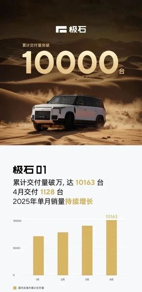 据极石汽车显示,截止至今年4月份,极石汽车在全球交付了超过1万台汽车。并且在中东地区,极石汽车极受欢迎。