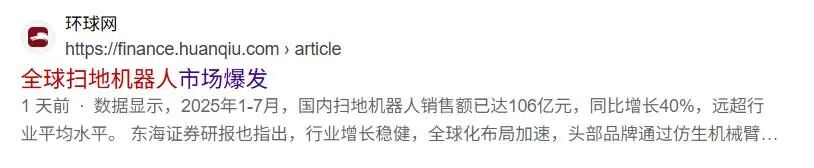据环球网报道今年1月至7月,扫地机器人在全国的销售额超过了106亿元人民币,相比去年同期暴涨了40%。