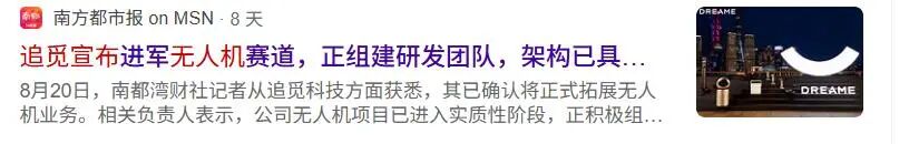 就在追觅宣布造车计划的前几天,追觅宣布了进军无人机赛道。会选择无人机这个赛道其实也并不意外。