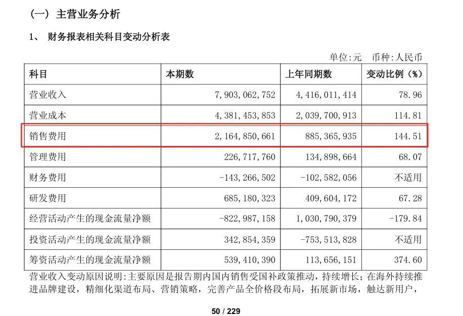 据石头科技2025年半年报显示,今年石头科技的销售费用暴涨144.51%,广告及市场推广费用增加了9.37亿元。