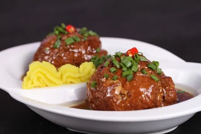 特点:等待时光的馈赠 做腊肉腊肠,急不来。要等天气,等风干,等时间的魔法发挥作用。 制作要点: 1. 选肥瘦相间的五花肉,用盐和香料腌制7天 2. 每天翻动,让腌制均匀 3. 在通风处晾晒20 - 30天 4. 期间要防雨防潮,每天查看状态 养生提示:自家制作的腊味无添加,但含盐量较高,高血压患者要少吃 四、细致功夫——蟹粉狮子头
