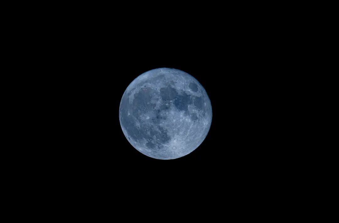 在晴朗的天气条件下,太阳光的各种颜色均匀地从月球反射回我们的眼睛,同时月亮表面的暗灰色也影响了最终的视觉效果,所以月亮看起来明亮而洁白。由于大气层中的水汽和颗粒物质对光线的散射作用,短波长的蓝光被大量散射和过滤,而长波长的黄光和红光则能更直接地到达我们眼中,从而使得月亮看起来具有暖色的光芒。由于地球的大气层不仅仅是散射蓝光,还会将红光折射到月球上,所以当月亮完全进入地球的阴影区域时,它会呈现出迷人的红色或铜色。这种红色是由散射和折射的红光组成的,通常被称为“血月”。“蓝月亮”不是指月亮呈现蓝色,而是指在特定条件下出现的天文现象。通常代表着一个月份中出现两次满月,这种现象大约每三年会发生一次。要使得月亮真正呈现出蓝色,必须有大量的烟雾、尘埃或其他微小颗粒悬浮在地球的大气层中。这些颗粒物质会对光线产生散射作用,使得蓝光在穿越大气层时得到增强,从而使得月亮看起来呈现出蓝色。