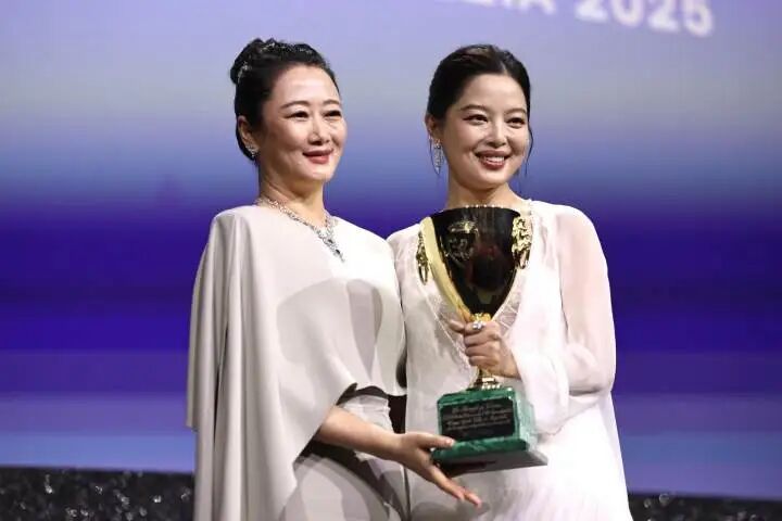 “大家晚上好,我是中国演员辛芷蕾。非常感谢威尼斯国际电影节能把这个奖颁给我,感谢所有的评委老师们能喜欢我的表演,喜欢我的电影。