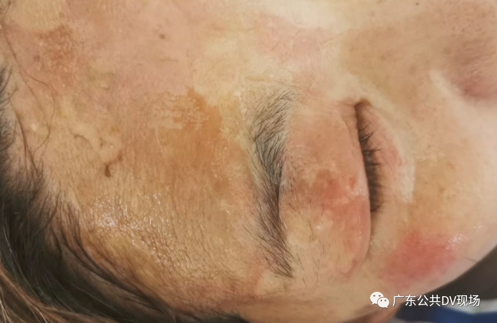 李女士的脸部被液体给灼伤