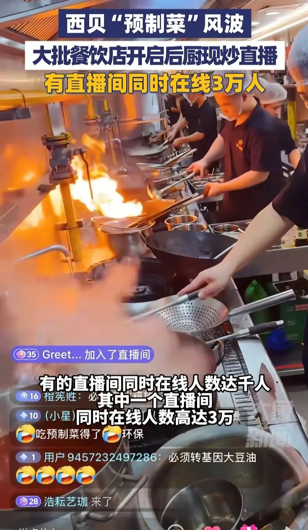 部分后厨直播间在线人数超3万人