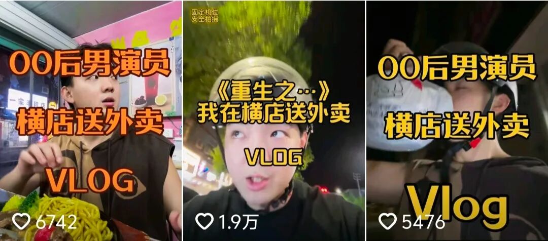 近日,24岁男演员舒辰在个人社交平台上,发布了多段自己在浙江横店接单送外卖的视频。