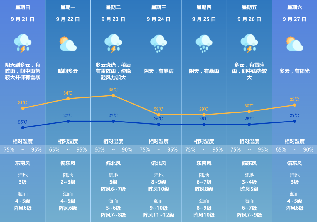 珠海市气象台预计22日至23日白天受“桦加沙”外围下沉气流影响,天气炎热,23日午后有雷雨,23日夜间至25日受“桦加沙”环流影响,我市将有狂风暴雨,请密切留意最新的天气信息并提前做好防御。 转发提醒!