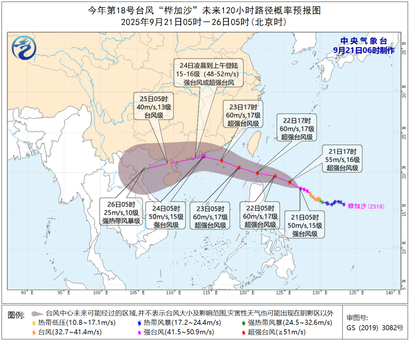 根据最新的数值预报显示,“桦加沙”发展潜力旺盛,或将加强至超强台风级。而且体型巨大,与2018年台风“山竹”以及2023年台风“苏拉”较为相似。