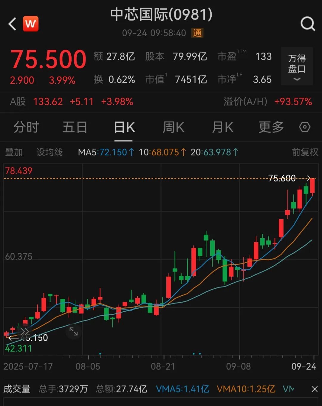 港股半导体股盘初也集体拉升,中芯国际涨近4%,股价再创历史新高;华虹半导体涨超2%。