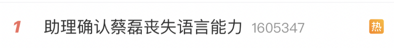 助理确认蔡磊丧失语言能力