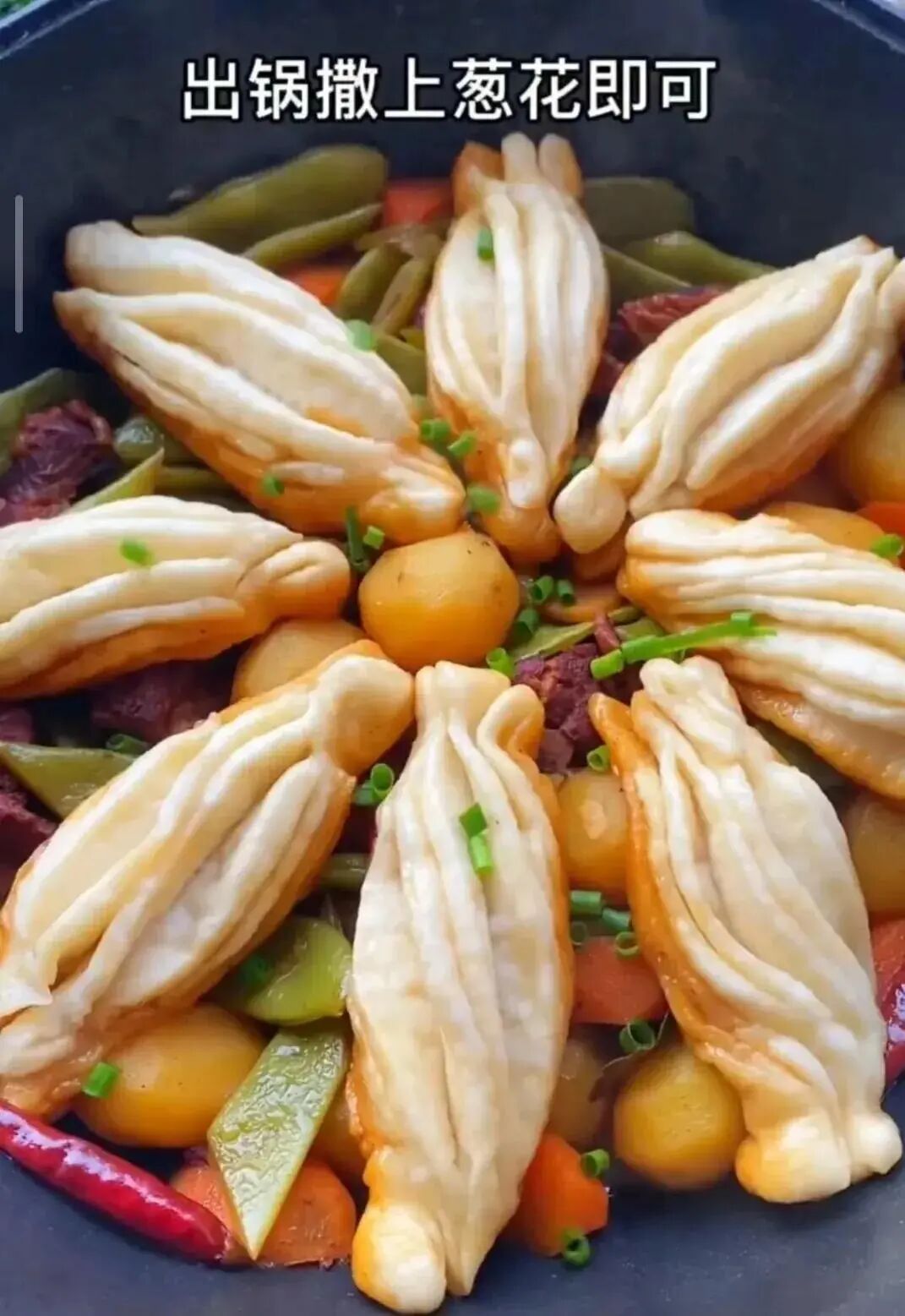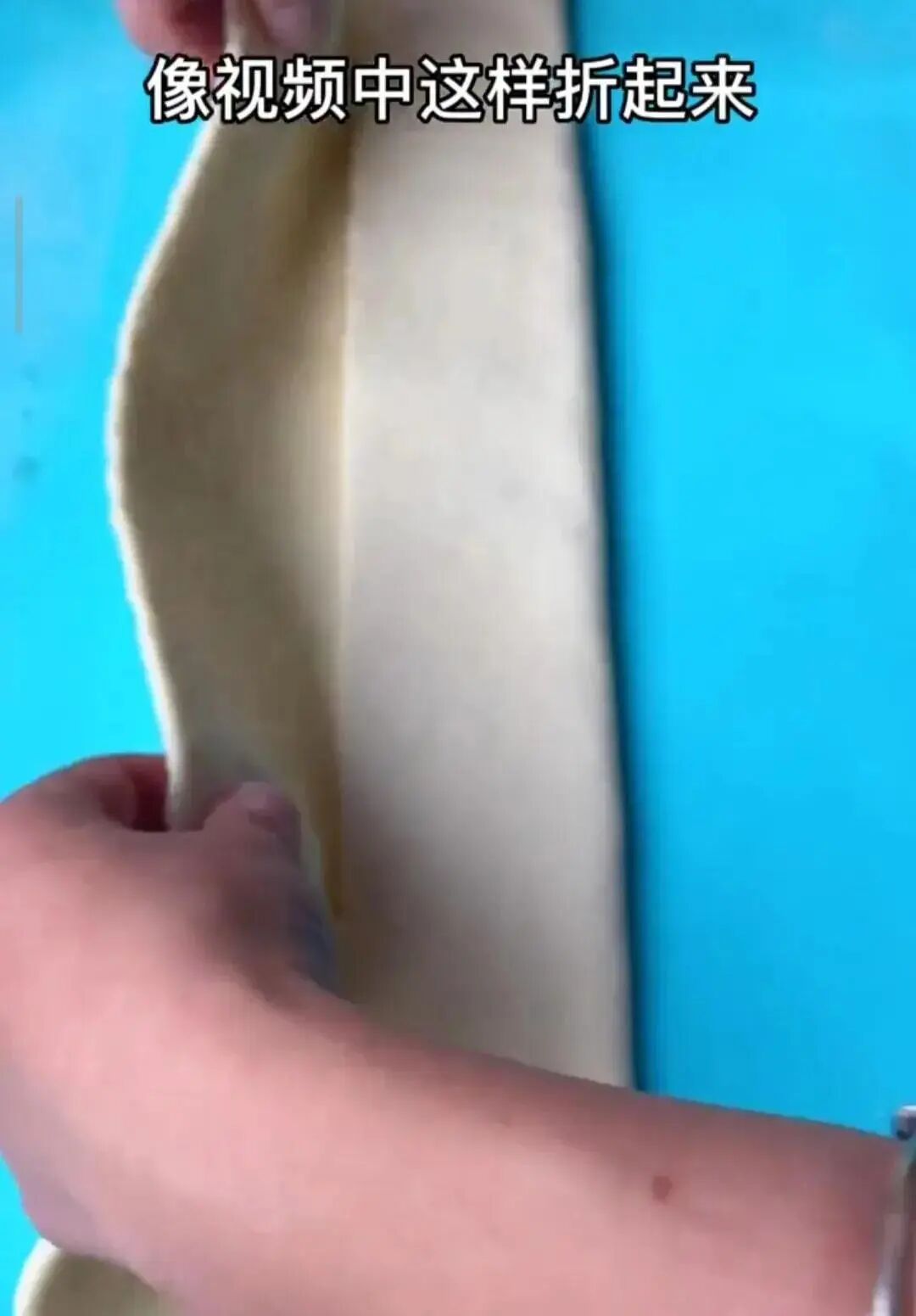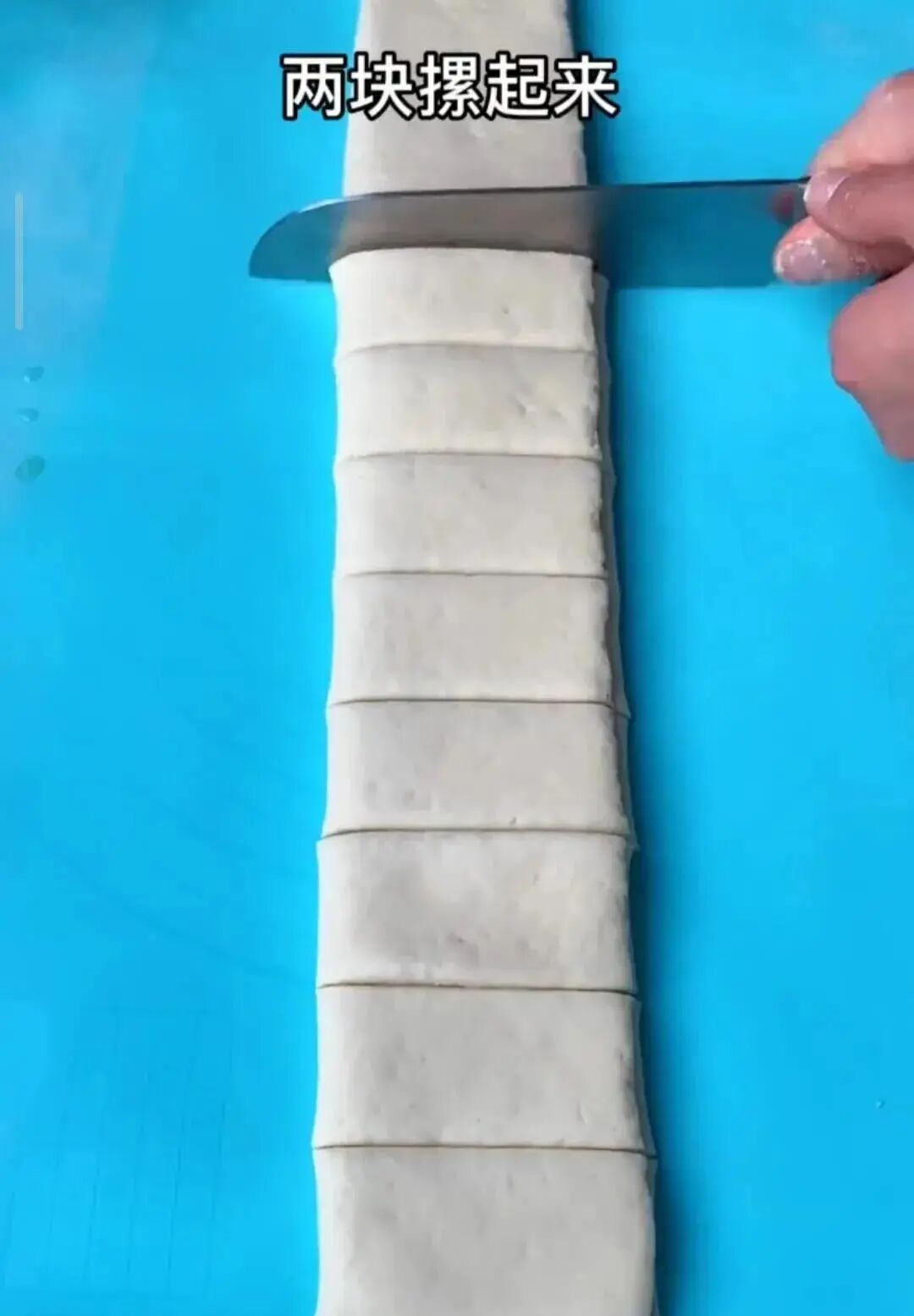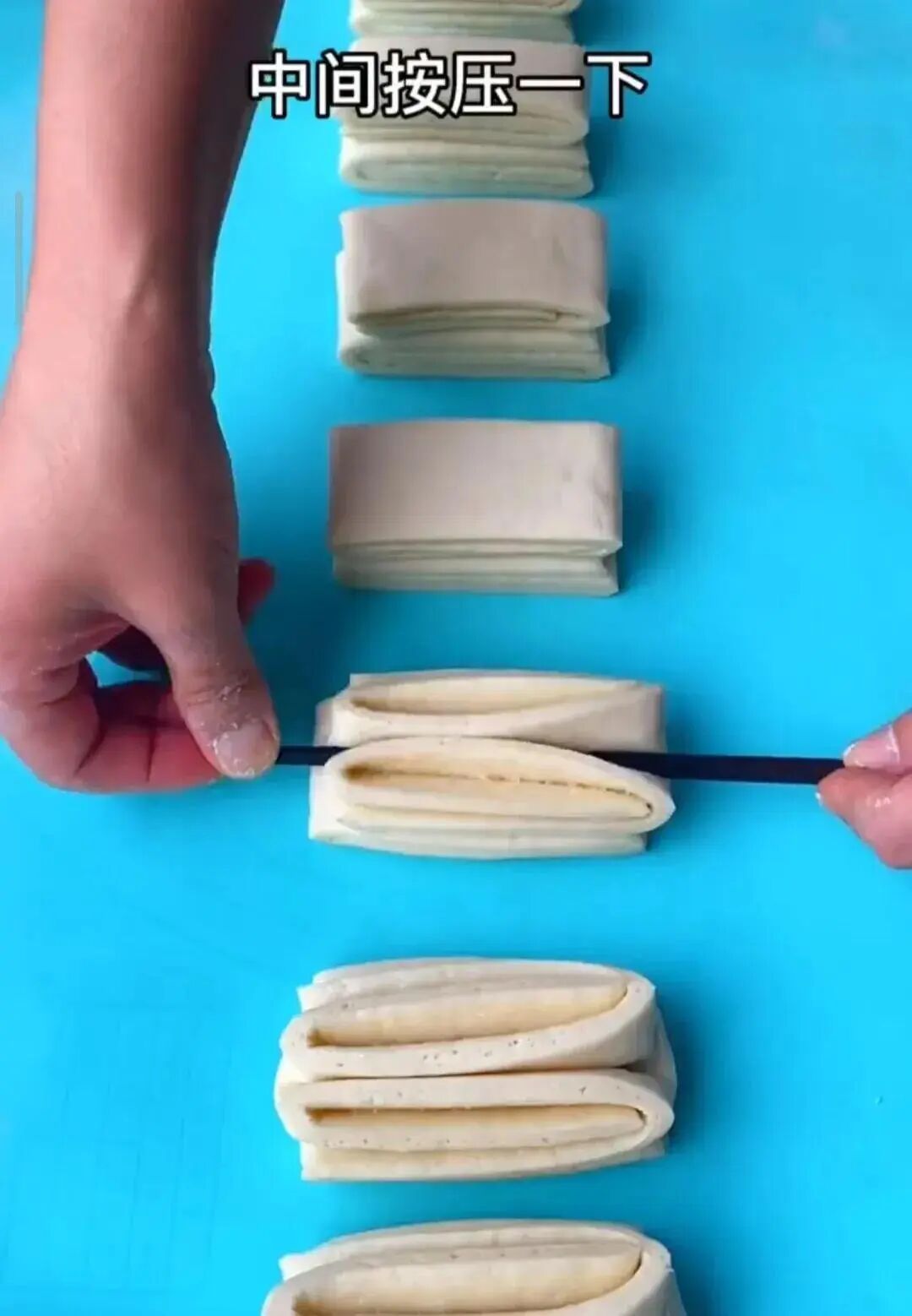 8、像图片这样的样子折起来,两块捆起来,中间用筷子压一下,之后拉长反方向扭一下;