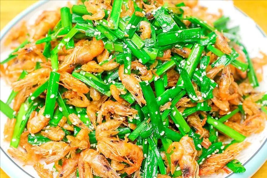 韭菜单独吃,可能很多孩子嫌味道重、不喜欢,但是搭配河虾一起炒却是一道不可多得的好菜,尤其是河虾别看个头小,钙含量一点不比大虾少,连壳一块嚼着吃,补钙效果好。