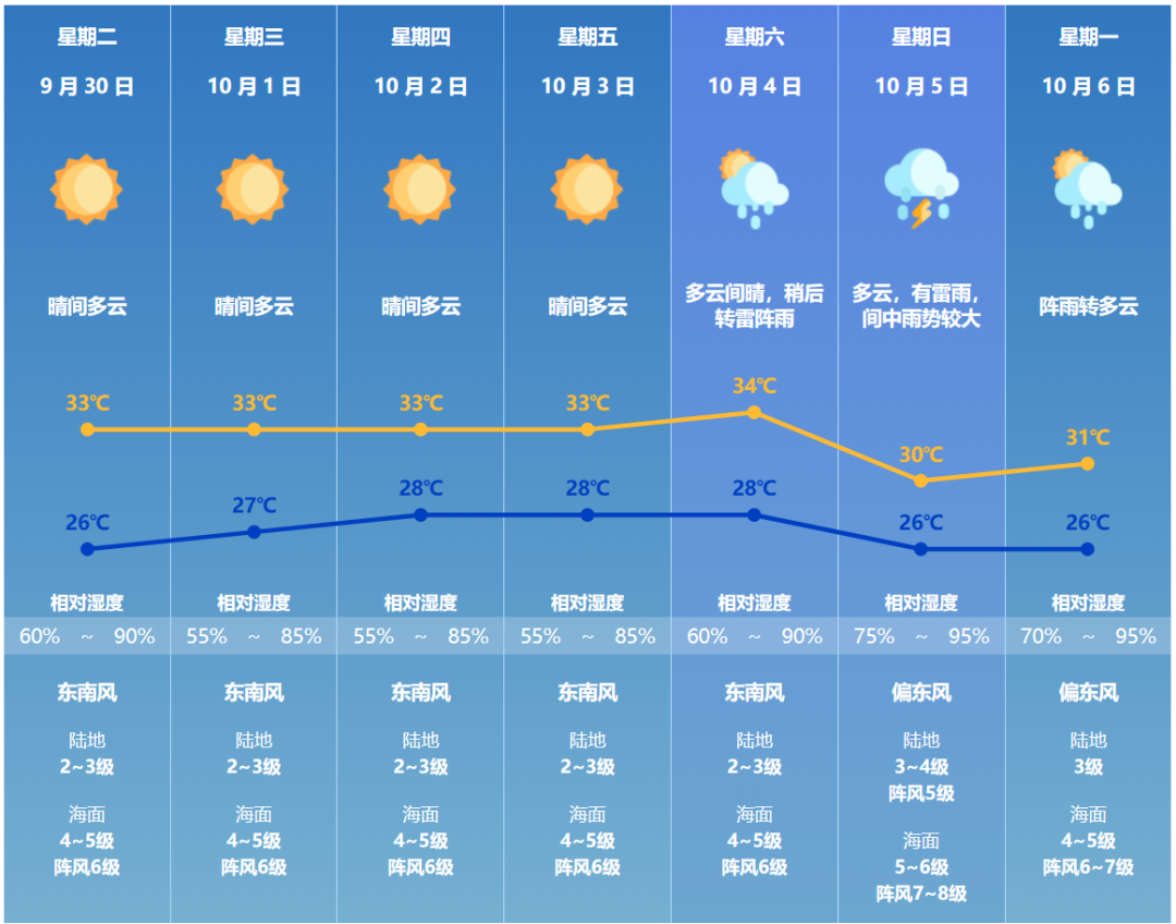 国庆假期前期珠海天气总体晴好,