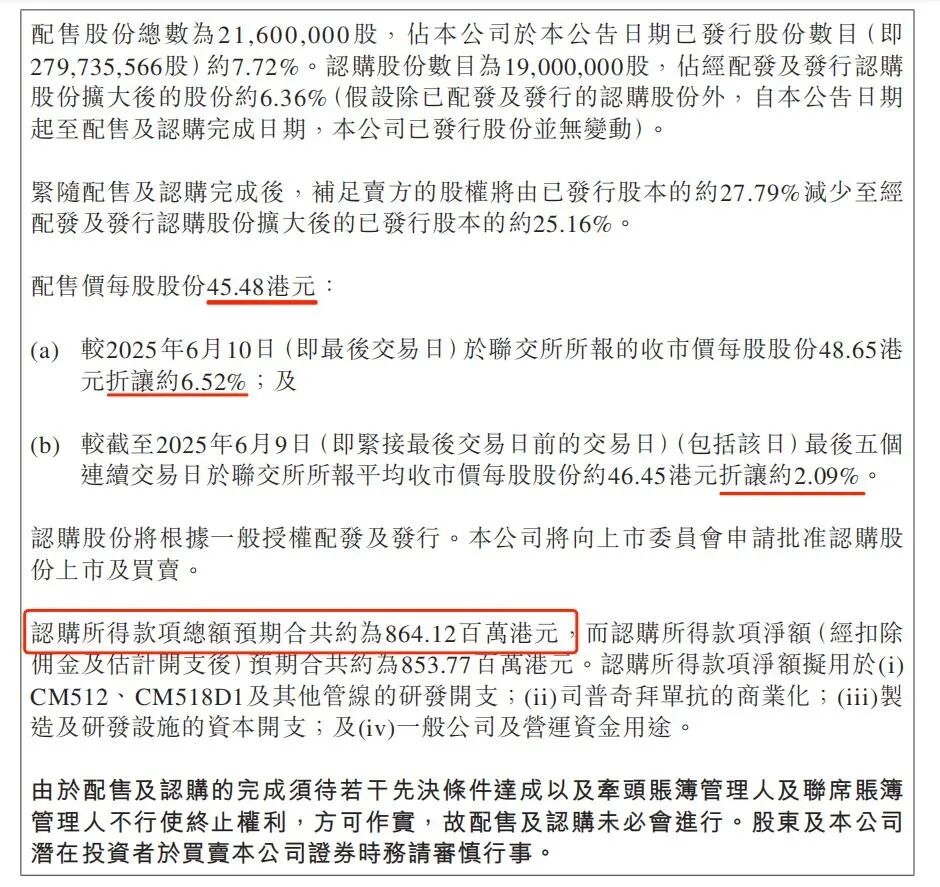 同期,康诺亚还有一个大动作通过配售及认购募资约8.64亿港元。这笔资金为其后续的商业化运营提供了资金保障,也为产品线扩展和市场推广创造条件。