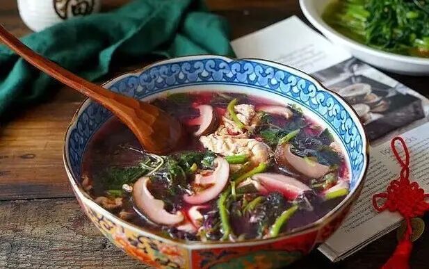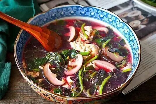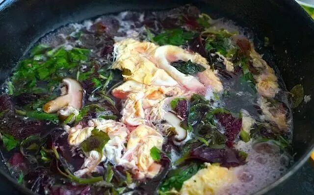 今天这道蔬菜汤选用的是红苋菜,营养丰富,色泽更好看,汤汁鲜美,感兴趣的可以跟着试试。 苋菜秋汤 食材准备:红苋菜70克、鸡蛋2个、香菇3个、葱1棵、盐1小勺 制作方法: 1、先准备好红苋菜、鸡蛋、香菇等食材,有绿苋菜也可以。 2、将红苋菜去掉根部择干净后,用水淘洗干净,沥干水分备用。 3、将鸡蛋磕入碗中搅打均匀。 4、香菇切片,香葱切成小颗粒状备用。 5、锅烧热后加入少许油,放入香菇片、葱花煸出香味。 6、然后再加入2大碗热开水煮开,想让汤水更好喝,不要放凉水煮汤。 7、煮开后,先放入红苋菜、盐,煮开后,再泼入鸡蛋液,煮开即可关火盛出饮用。 小贴士: 1、红苋菜和香菇都是自带鲜味的食材,所以煮汤无需另外添加鸡精。 2、这道菜汤,还可以加点虾皮,味道会很不错。 3、蔬菜汤千万不要煮时间太长,以免破坏叶子里的营养。