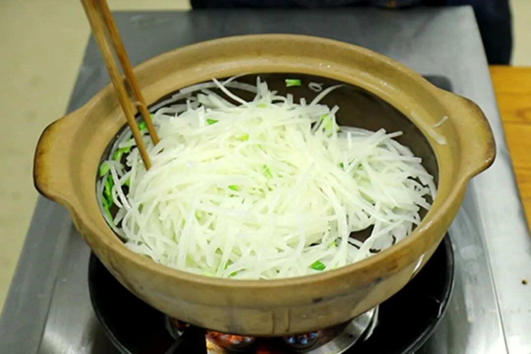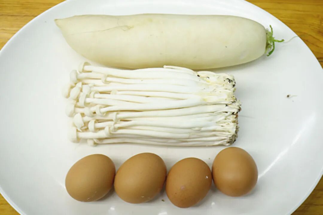 二、萝卜鸡蛋汤开胃又顺气、润燥又解渴的白萝卜,可以说是秋冬季、家家户户的必备品,想省事的直接生啃萝卜、不寒不燥,吃完神清气爽、全身舒畅。 具体做法: 1.水果萝卜去皮、切成细丝;一小把白玉菇洗净、切成小段;再煎几个鸡蛋备用 2.砂锅中加少许底油,放入葱花爆香,把萝卜丝放进去翻炒1分钟,断生以后放入白玉菇,倒进去半锅开水,放入煎好的鸡蛋,盖上锅盖炖煮15分钟。 3.一直把汤炖浓白,加点盐、鸡粉调味即可,清香有营养,常喝顺气还开胃。