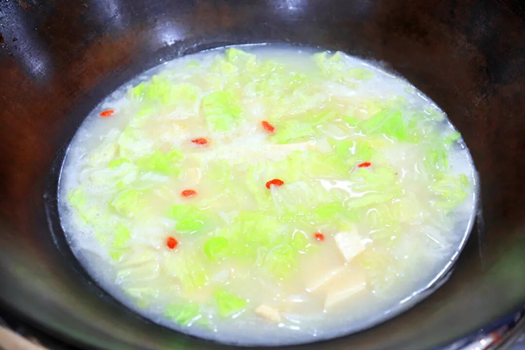 三、白菜豆腐汤俗话说“白菜豆腐保平安”,豆腐是食物蛋白之王搭配粗纤维和钙都很丰富的白菜一起炖,补营养解秋燥、清淡好吸收,堪称平价滋补之王。 1.首先,我们把老豆腐切成骰子块,一般老豆腐炖出来的汤要更香;白菜洗干净咱只用叶,切成宽条;几粒枸杞子放入清水中浸泡一会儿。 2.豆腐食用前要先焯水,去去豆腥味,焯水的时候加一勺食盐,既能入味又能使豆腐更加的劲道。水烧开以后放入豆腐煮1分钟,然后倒出来冲洗干净、控水备用。 3.锅里烧油,把葱花放进去小火爆香,舀进去半锅清水,加食盐2克、胡椒粉2克、鸡精2克搅拌均匀,然后把豆腐放进去,大火烧开以后转小火炖2分钟,让豆腐吸收汤汁入味。 4.2分钟以后放入白菜叶继续煮30秒钟,白菜断生以后淋入一点香油、放入泡软的枸杞美味即成。 三种汤别看便宜,去火、润肺、降燥、通肠样样在行,有时候越是普通东西,价值越不容忽视,建议秋分时节要多喝。 来源|千厨百味、如有侵权请联系删除