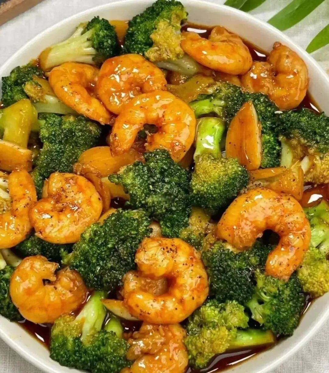 食材:西兰花1颗、鲜虾10只、姜蒜适量。