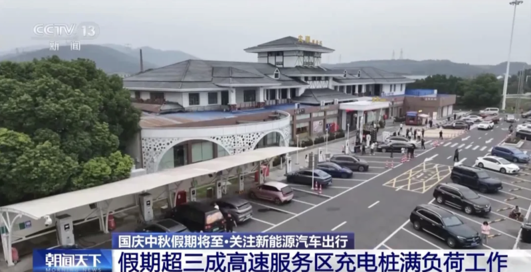 超三分之一高速服务区充电桩预计将满负荷工作(视频截图)